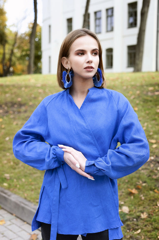 Bluse mit Kragen mit abstrakten blauen Blumen