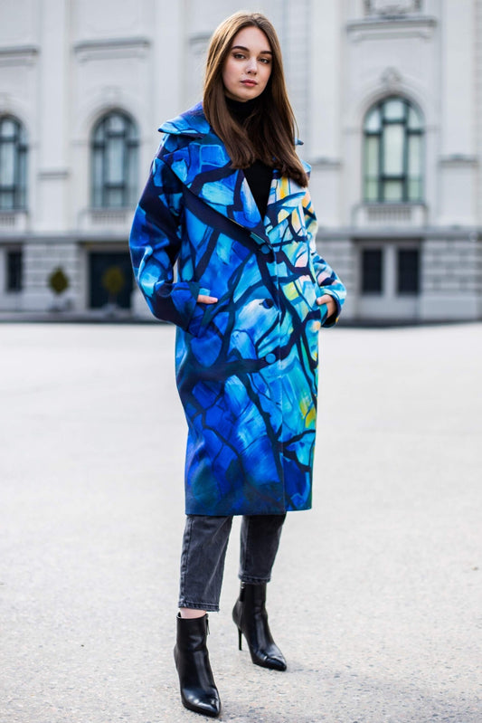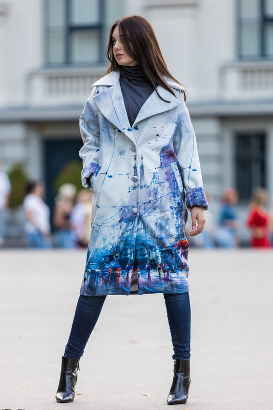 Eleganter Oversize-Mantel mit aufgemaltem City-Print