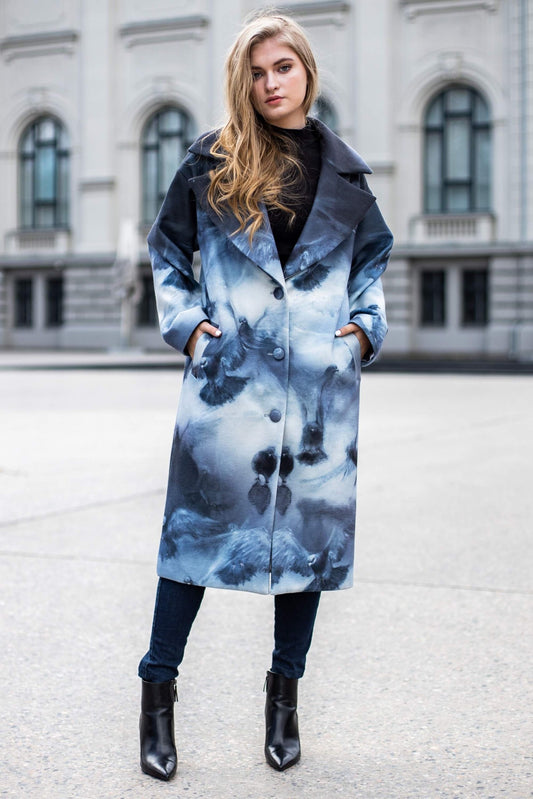 Klassischer Oversize-Mantel mit aufgemaltem Taubendruck