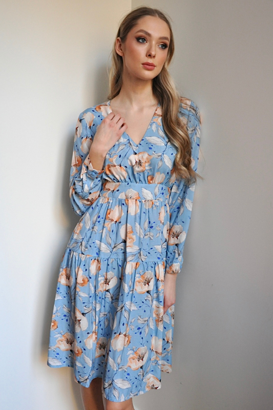 Blaues locker geschnittenes Kleid mit Blumendruck
