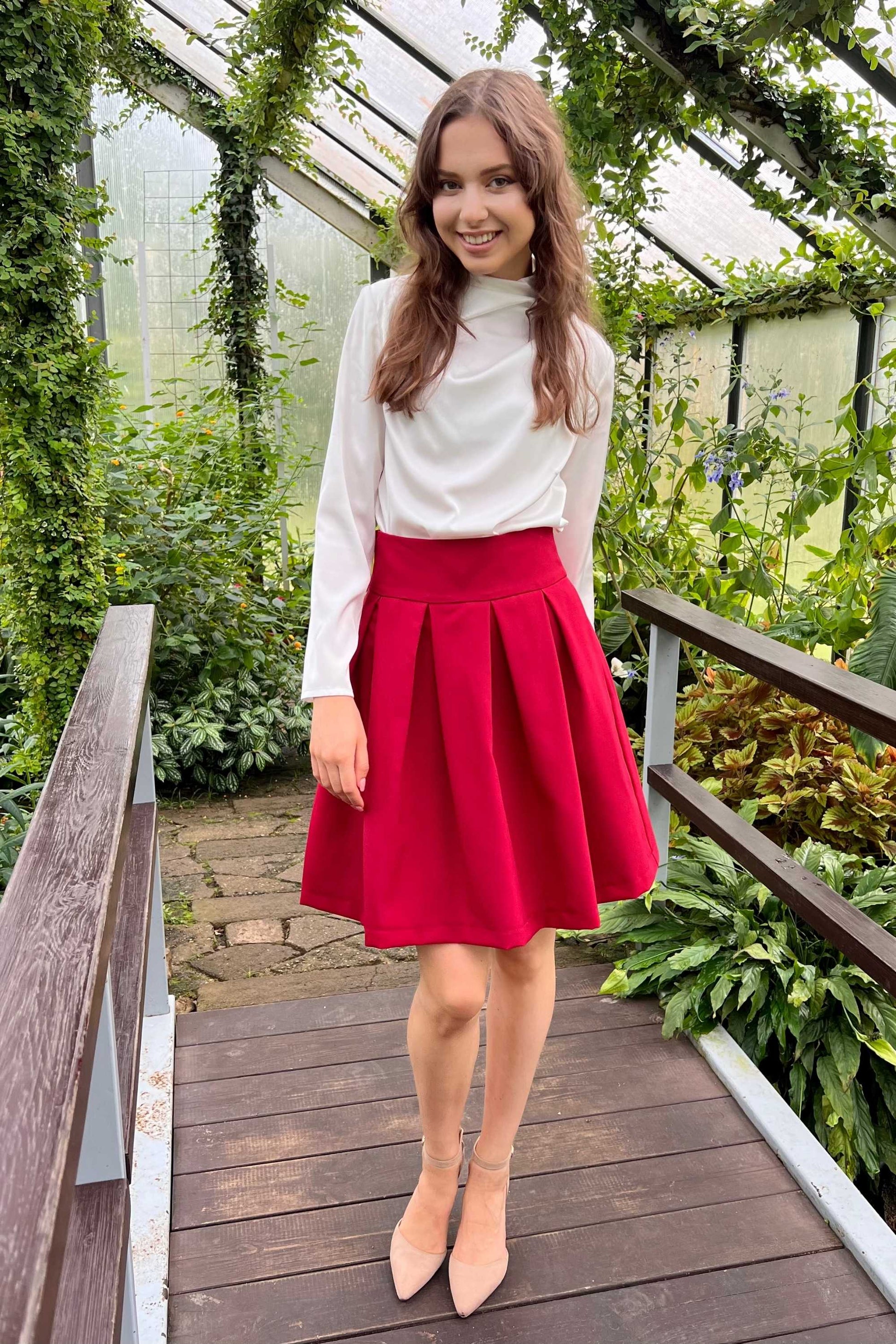 Full mini skirts with side pockets. Skirt with lining. Material is very comfortable wearing, slightly elastic and won’t crease. When washing, color remains the same brightness.