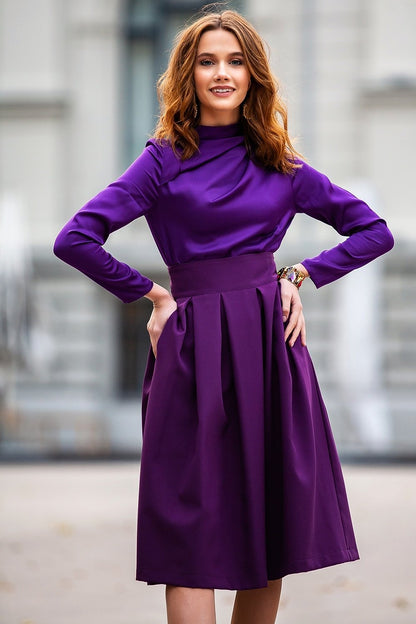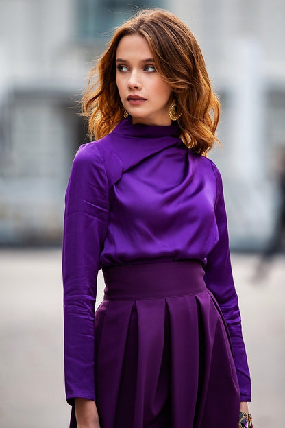 Lila Bluse mit Falten an der Schulter