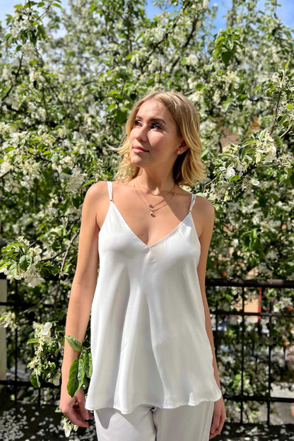 Weißes Satin-Top mit Trägern