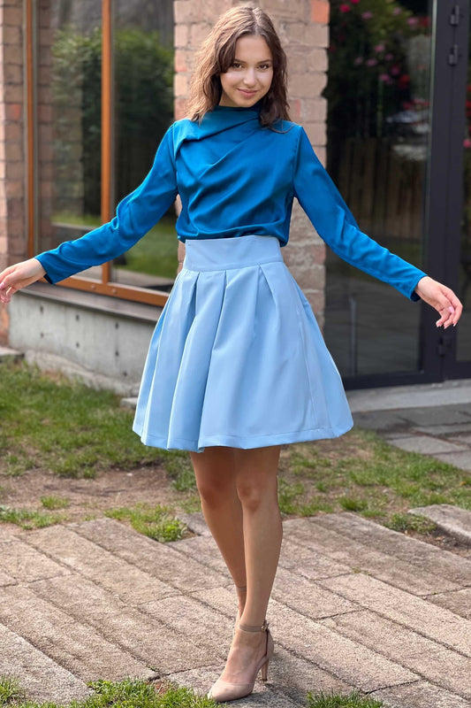Gaiši zili mini svārki ar sānu kabatām