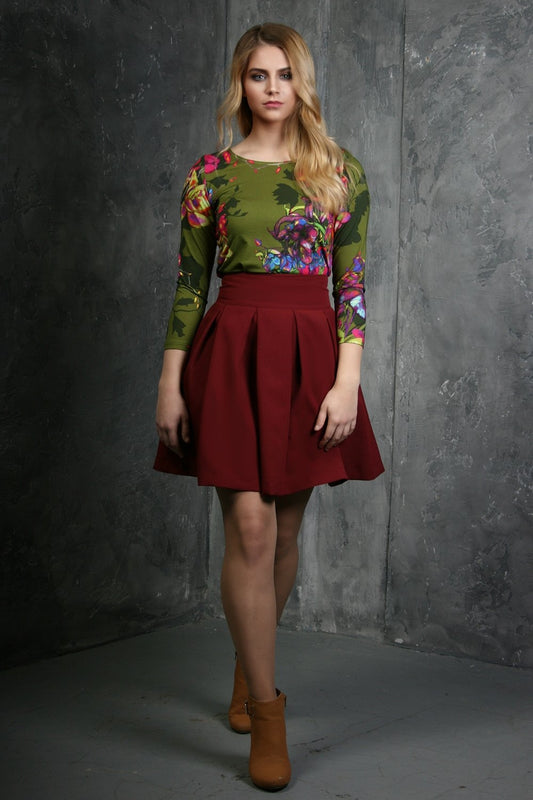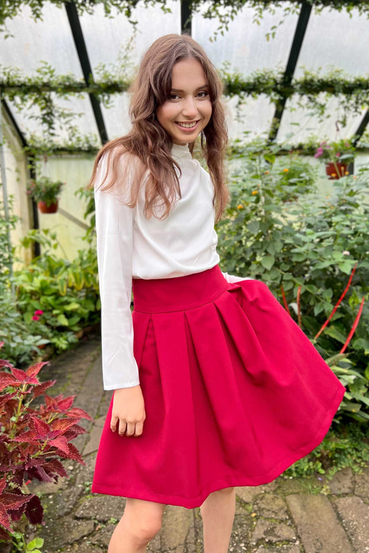 Tumši sarkani kupli mini svārki ar sānu kabatām
