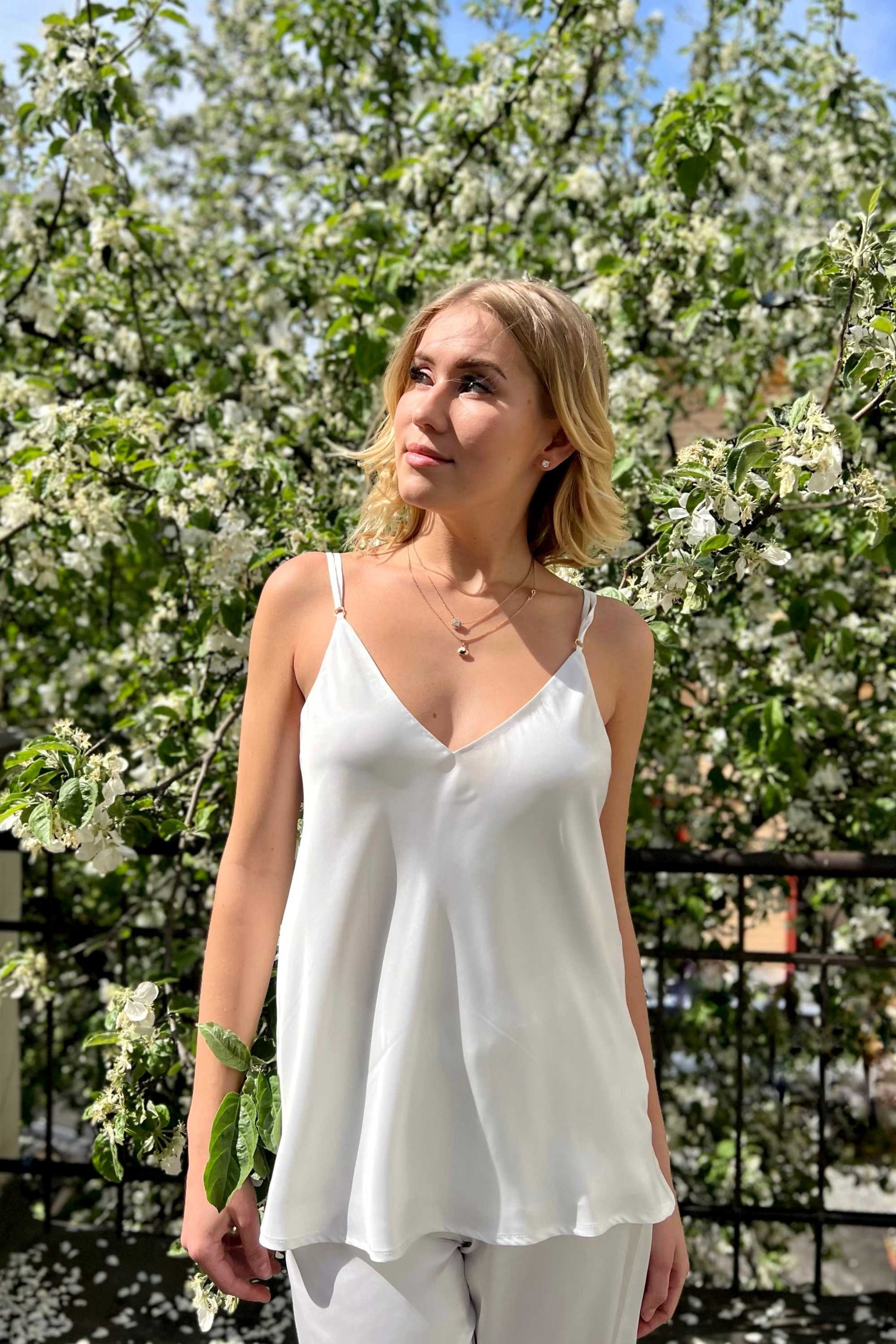 Šis baltā satīna topiņš uz lencītēm ir ne tik elegants un apburošs. Izgatavots no augstas kvalitātes satīna auduma, tas piesaistīs uzmanību ar savu spīdumu un maigo tekstūru. Šis topiņš ir ideāla izvēle gan ikdienas, gan svētku tērpa papildinājums. Izcelies un jūties īpaša, iekļauj šo baltā satīna topiņu savā garderobē.