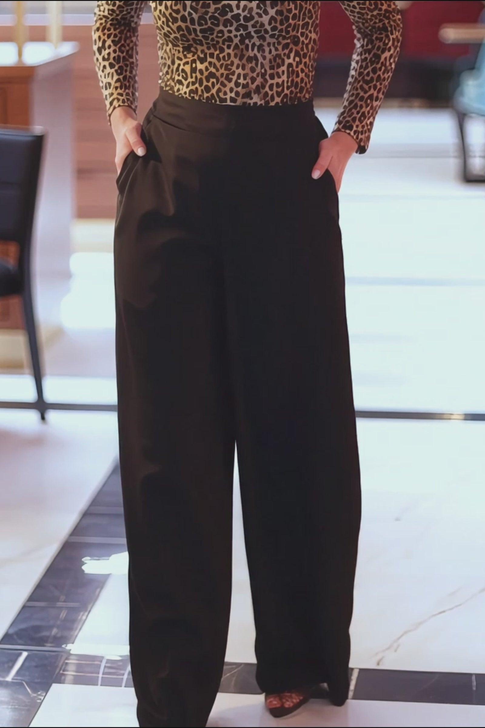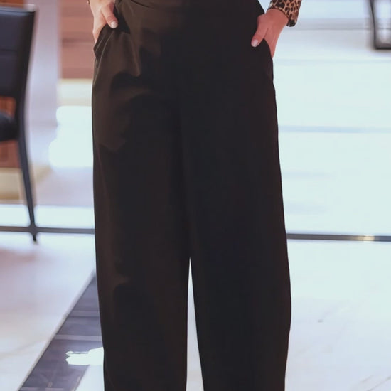 Black Satin Wide-Leg Trousers
