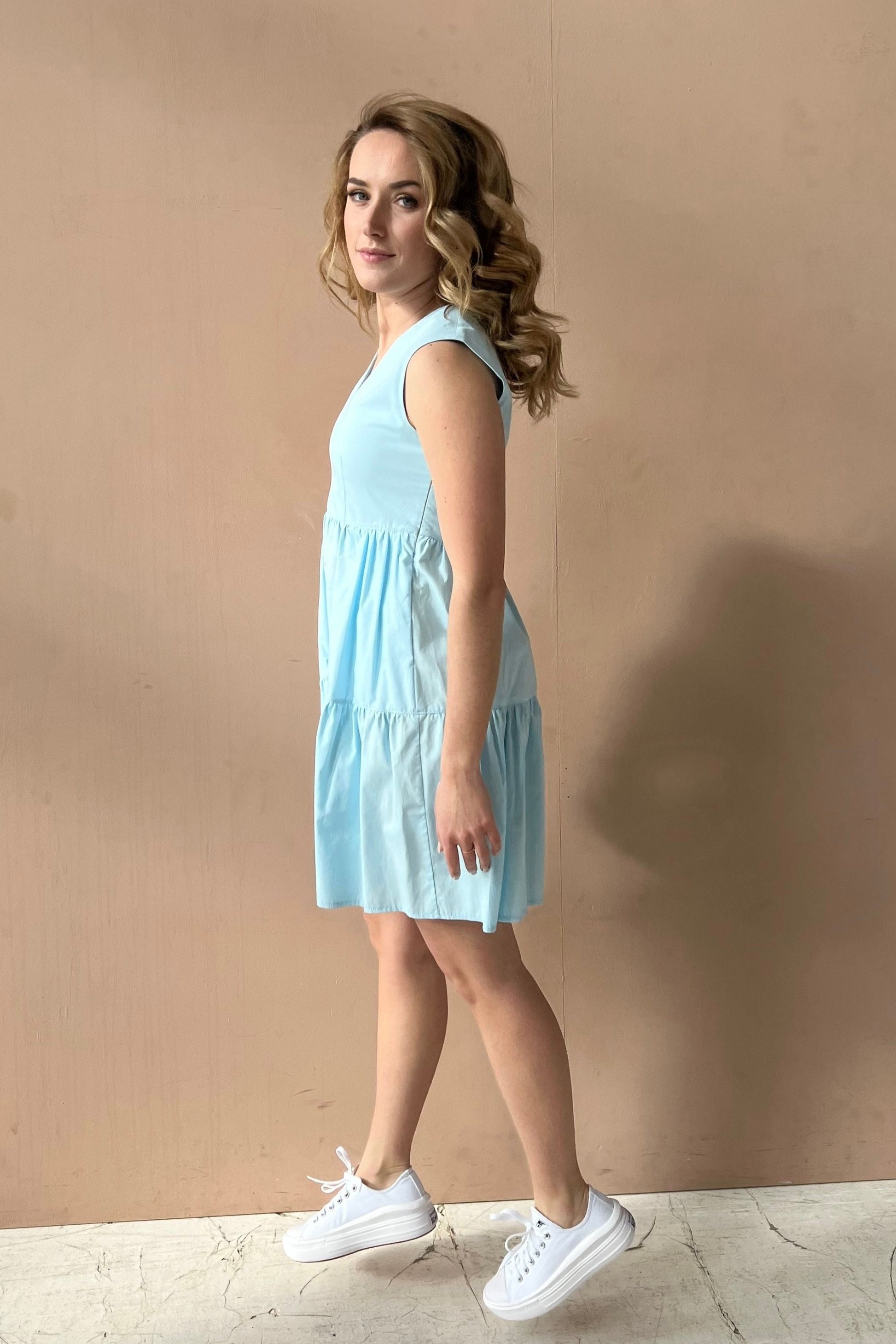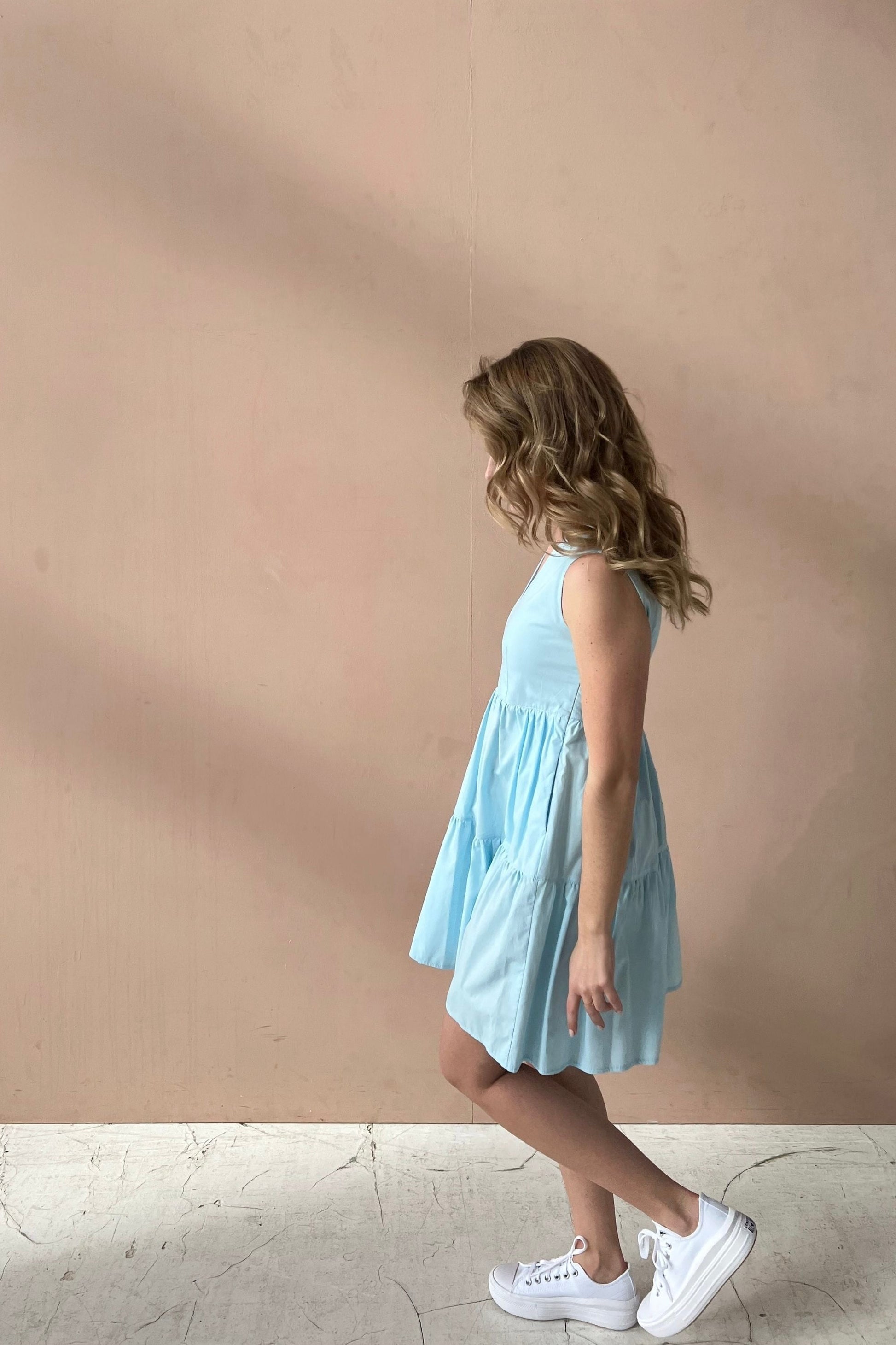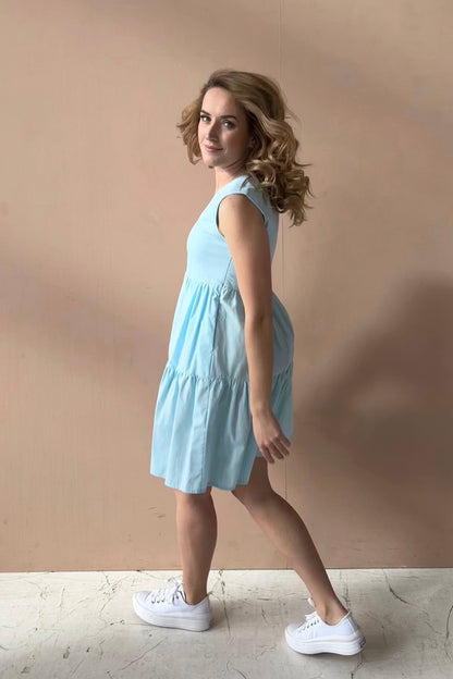 Light blue cotton mini dress with ruffles