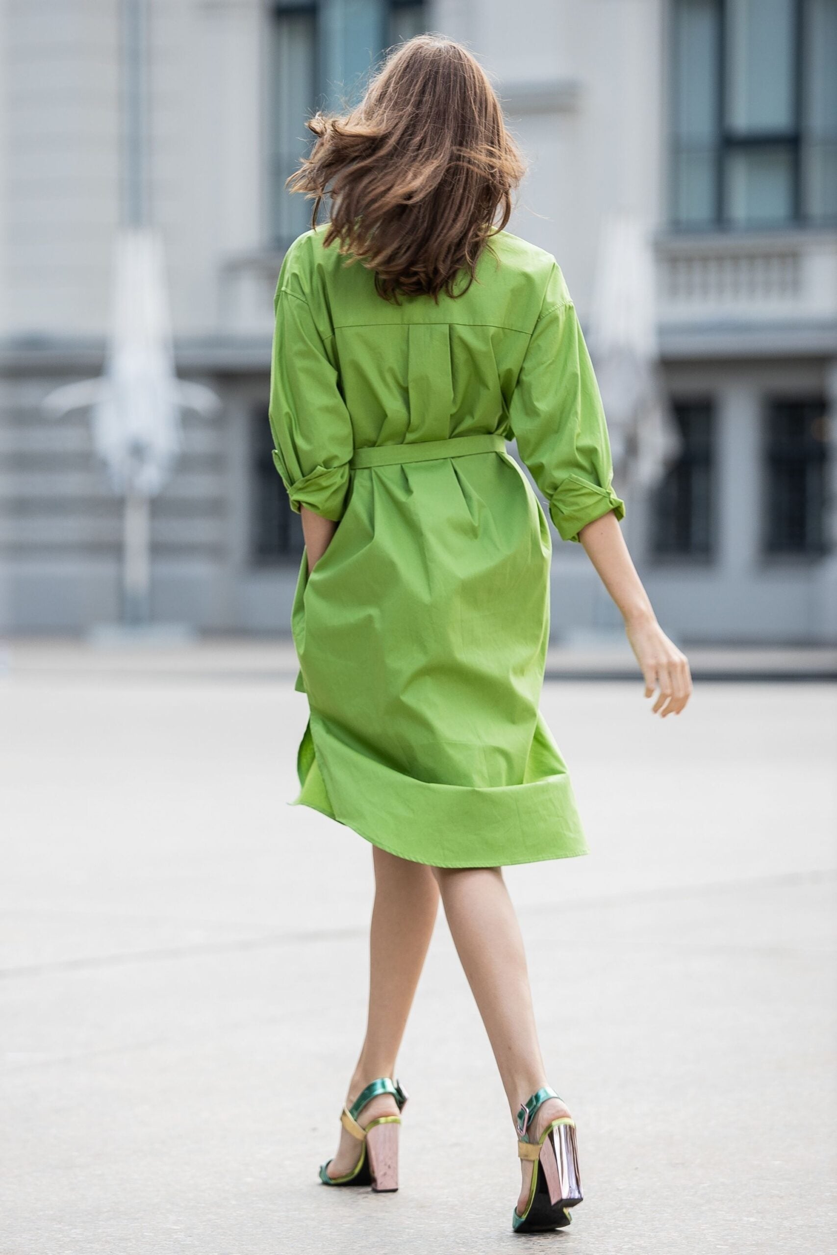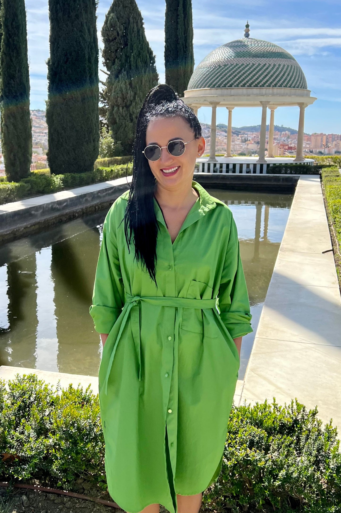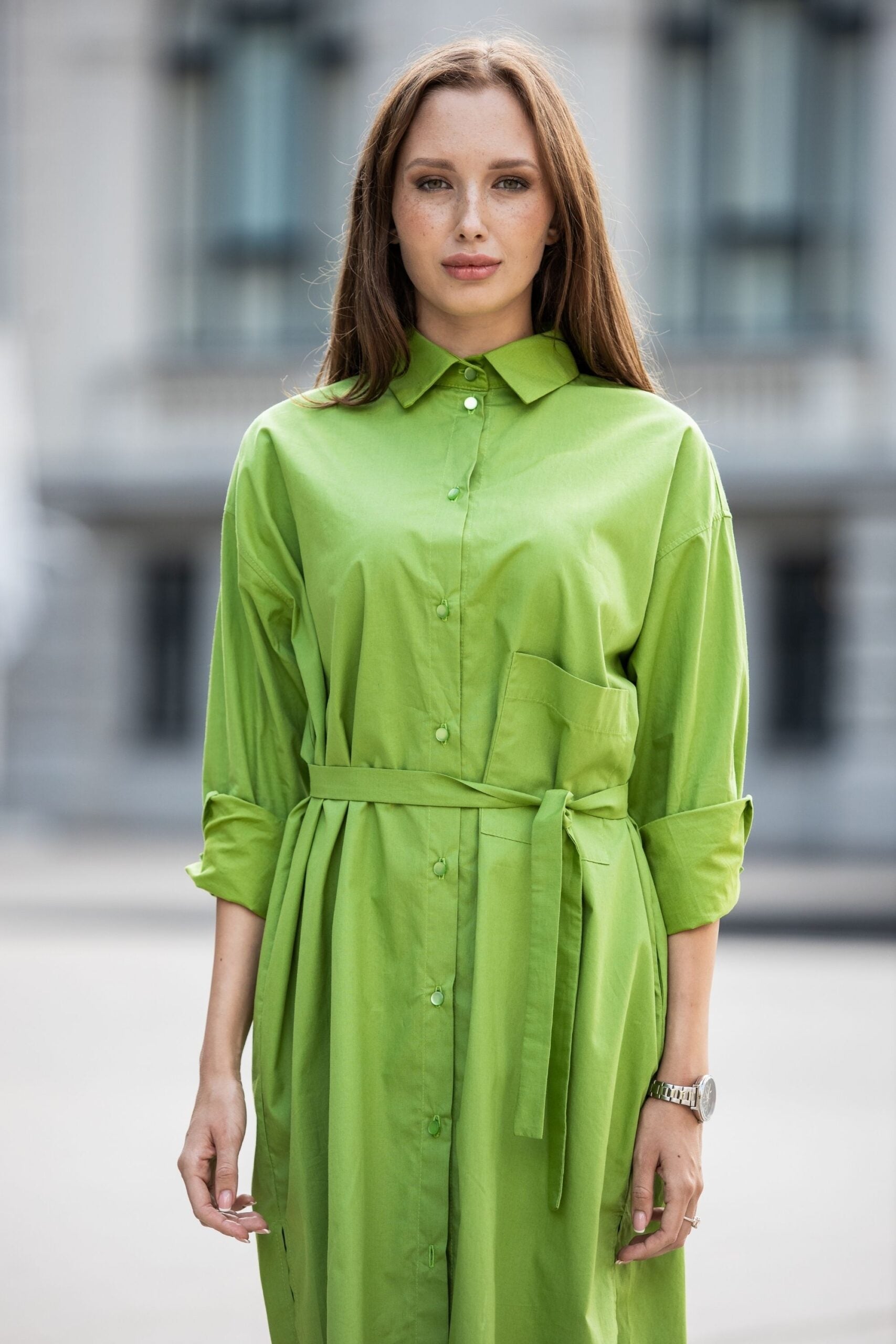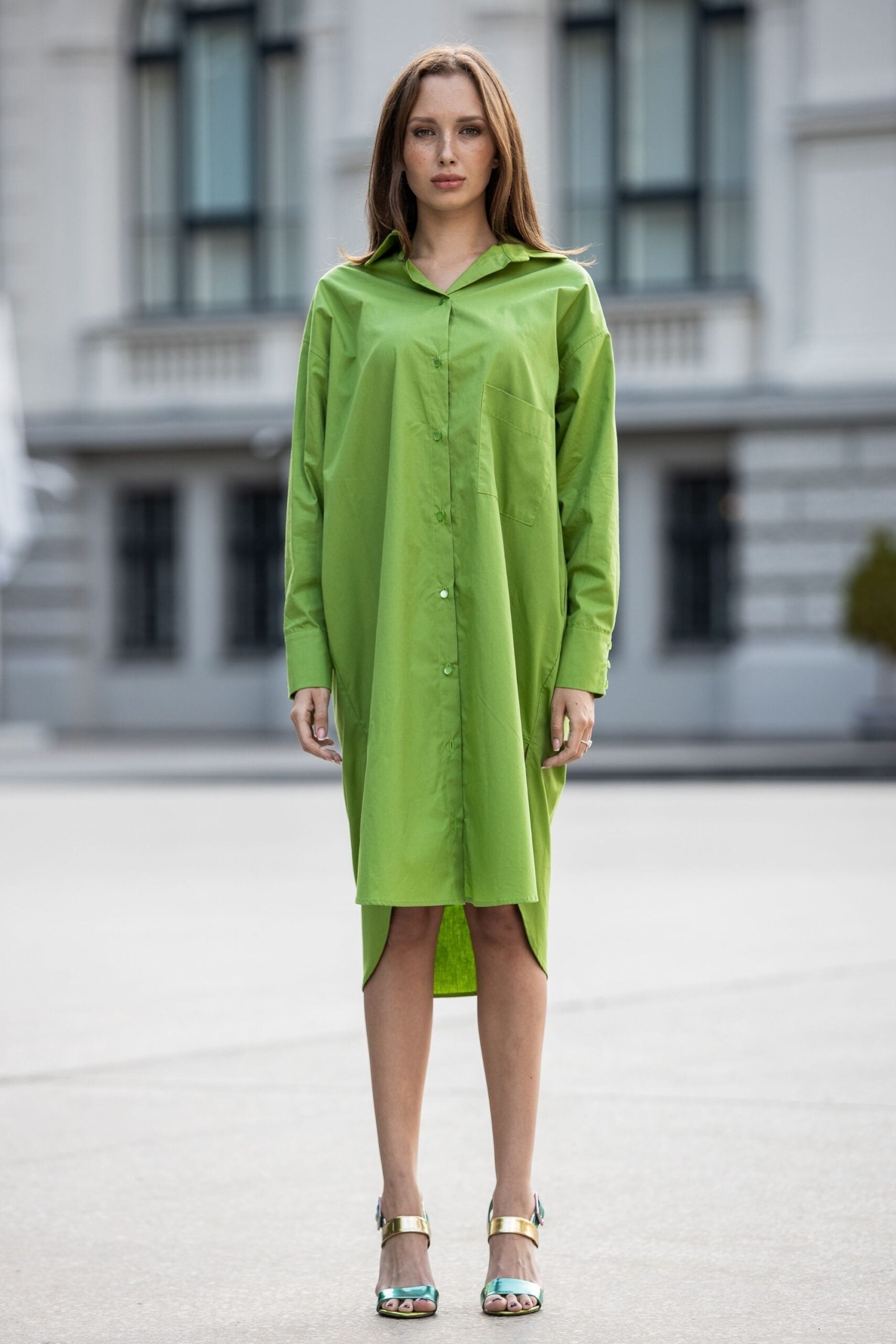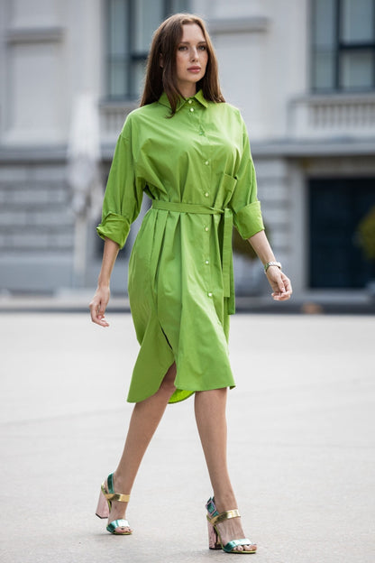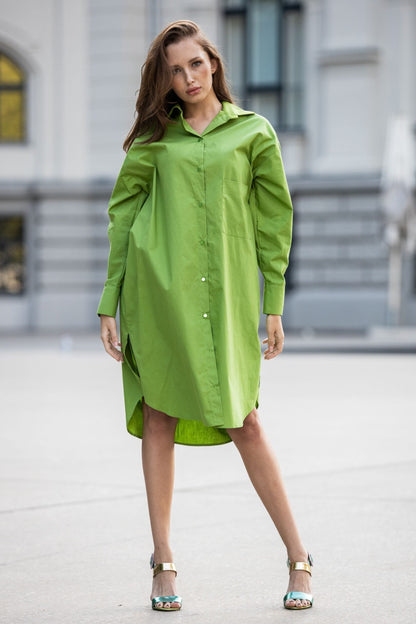 Organic cotton oversize shirt dress in light green color