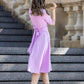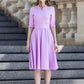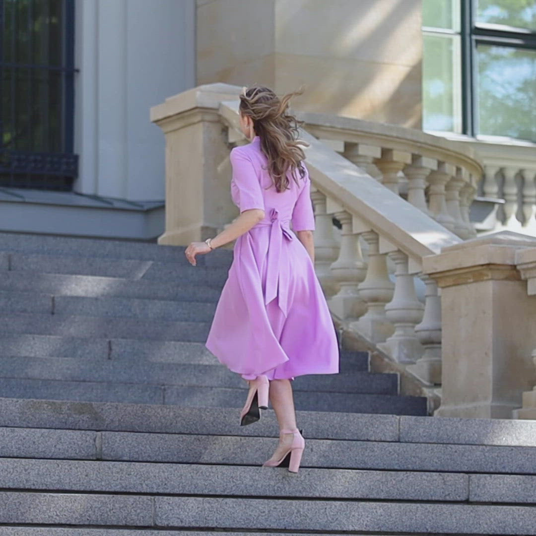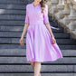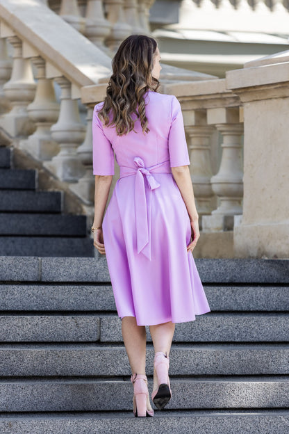 Periwinkle midi dress with circle skirts Dress with separated belt, mid sleeves and zipper on the side.