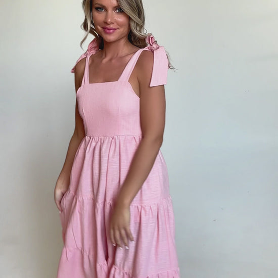 Effortlessly chic and undeniably comfortable, this rose flared linen dress is your go-to piece for sunny days and relaxed elegance. Crafted from breathable, lightweight linen, it features a flattering square neckline and charming tie-up shoulder straps that add a playful, feminine touch. The tiered silhouette creates a soft, flowing shape that moves beautifully with every step.